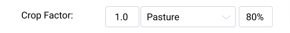 Adding more Crop Factors to the model requires you to input the coverage of each plant type. With a single factor, this is automatically at 100% coverage. However, upon adding another, both can be edited to represent a different proportion of a target plot.